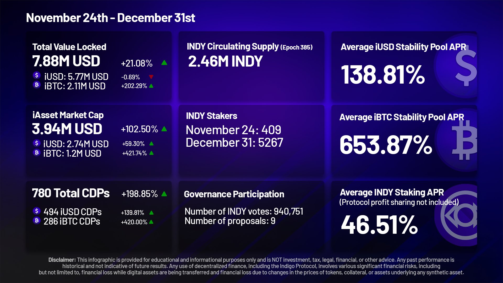 Past Performance and Key Metrics of Indigo Protocol.